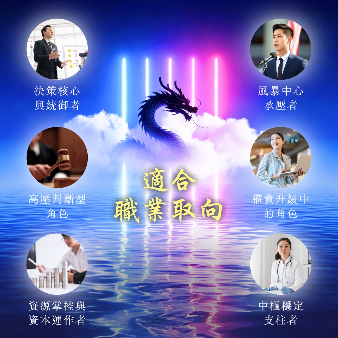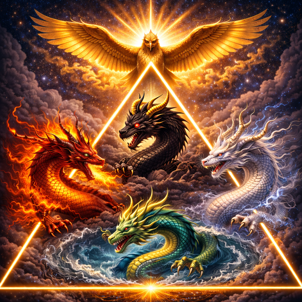 大鵬 = 高維思維 / 黑龍 = 主權核心 / 青龍 = 長期發展 / 紅龍 = 行動效率 / 白龍 = 結構整合