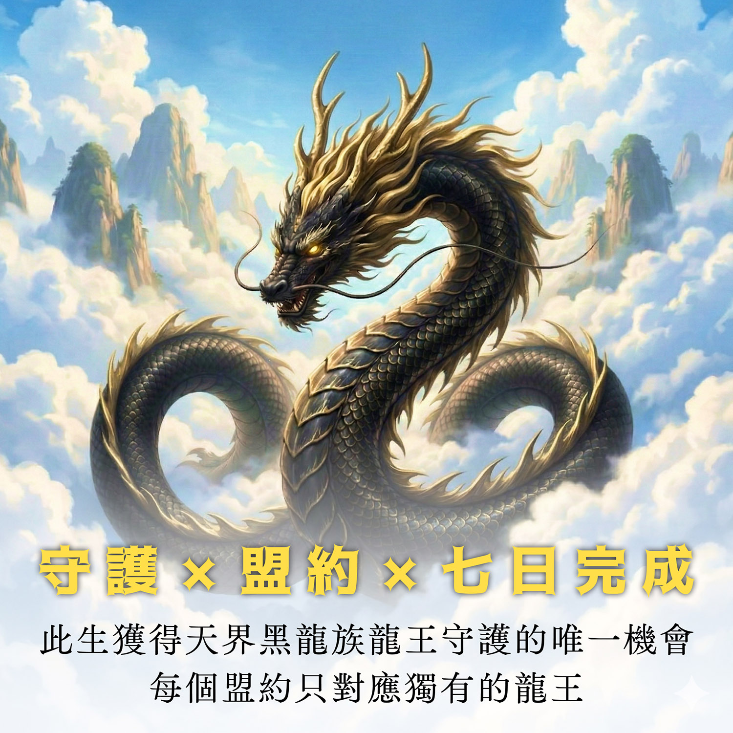 確認契約者後,每一件《天界黑龍王.守護盟約項鏈》,將由莫子本人完成 七日完整盟約儀式。