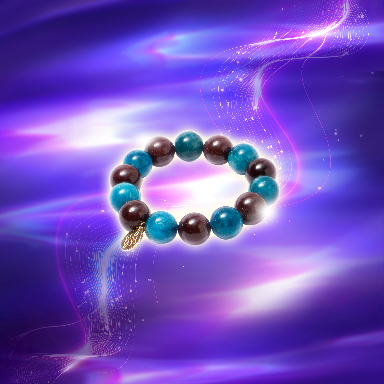 高頻情境顯化手串,使用了藍磷灰石以及紫牙烏石榴石串成手串,原理是利用紫牙烏石榴石平衡高頻與低頻的作用,將低頻的能量中和,達到一種微妙的協調,這時候低頻會產生柔軟的韌性並帶有高頻的特性,這時候將能量比喻成液化的低頻或是軟化的低頻,而藍磷灰石的作用有如一個高頻的模子,將帶有高頻特性的軟性低頻,灌入藍磷灰石這個高頻的模具裡,最後成為了高頻的能量,此時完成的高頻能量已經具有顯化成現象的能力,所以無形中,會將低頻的信念與情境,藉由這兩種礦石的交互作用,轉變為高頻情境,也可以稱為順境,這種轉逆為順的作用就是高頻情境顯化手串的奧秘所在。