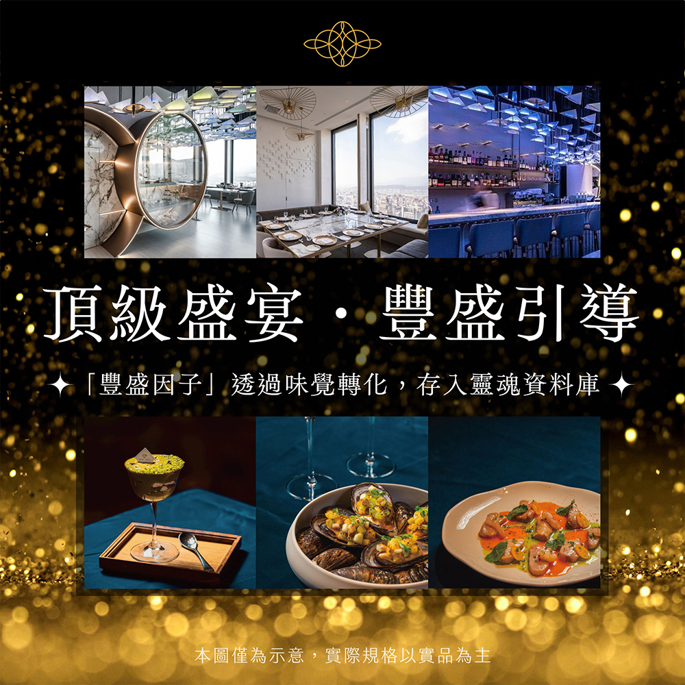 以頂級法式料理作為儀式媒介,將「豐盛因子」透過味覺轉化,存入你的靈魂資料庫,成為未來顯化豐盛的能量基因。(市值 NT 5,000元 以上法式餐點)